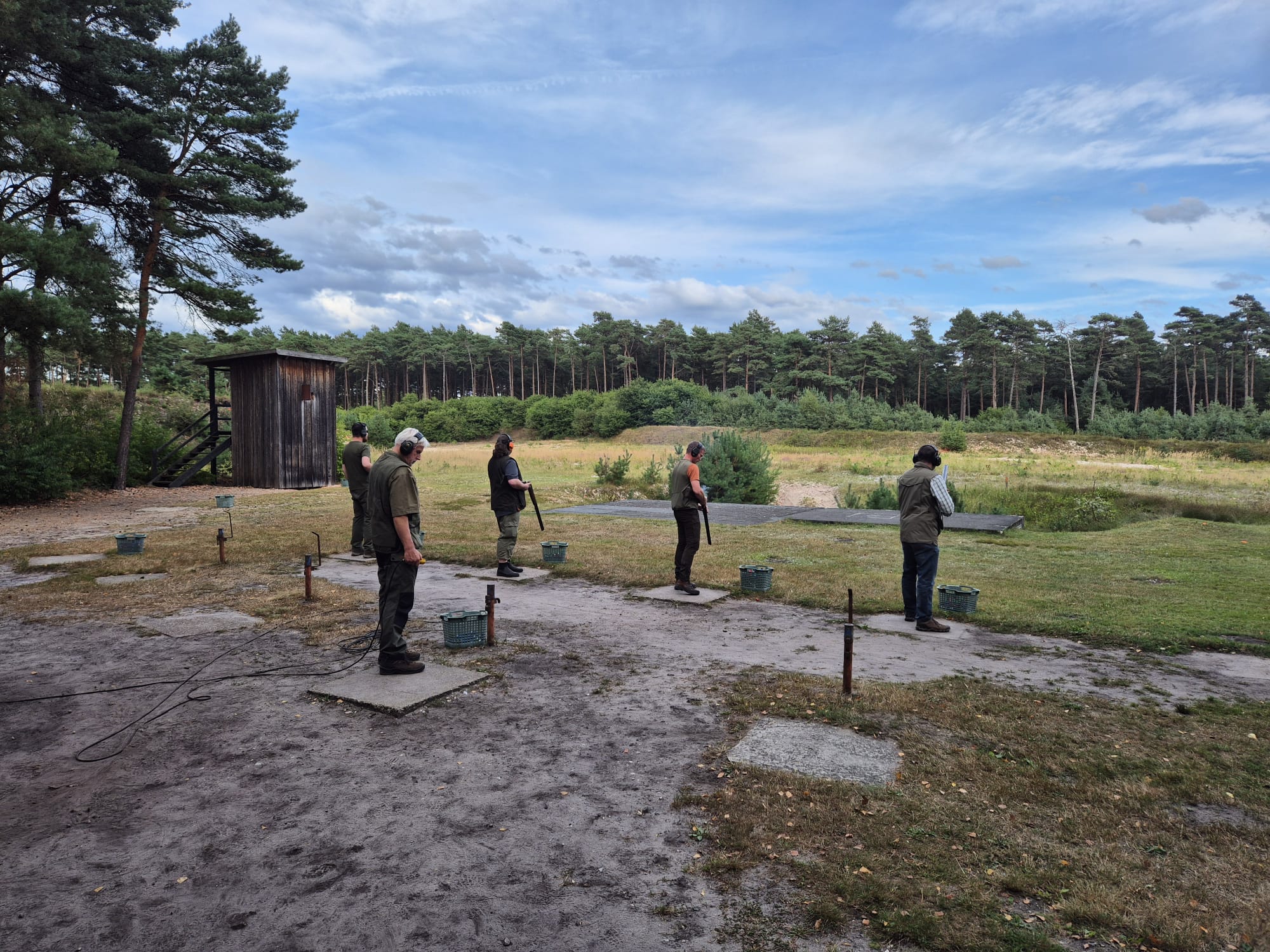 Die Teilnehmenden zeigten, dass sie nicht nur mit dem Horn, sondern auch mit der Büchse sicher umgehen können. Beim Laufenden Keiler flogen die Kugeln zielsicher ins Schwarze, und auch an der Tontaube bewiesen viele ein gutes Auge und eine ruhige Hand. Ob beim Trab-Schießen oder beim anspruchsvollen Skeet – die Stimmung war ausgezeichnet, die Ergebnisse beachtlich.
