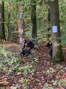 Leinenführigkeit und Verhalten auf dem Stand stellten für die 5 Hunde unterschiedlicher Rassen und Temperamente keine Hürde dar und meisterten diese Fächer. Die Waldfächer waren abgeschlossen.