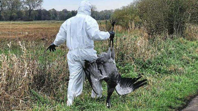 Die toten Kraniche werden von eingewiesenem Personal in Schutzkleidung eingesammelt. Menschen und Haustiere sollten sich unbedingt von verendeten Wildvögeln fernhalten.