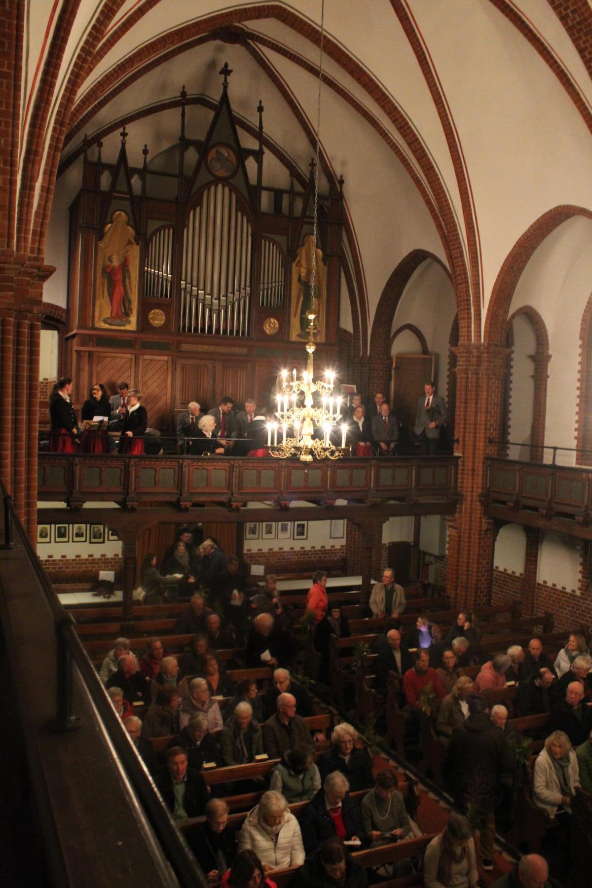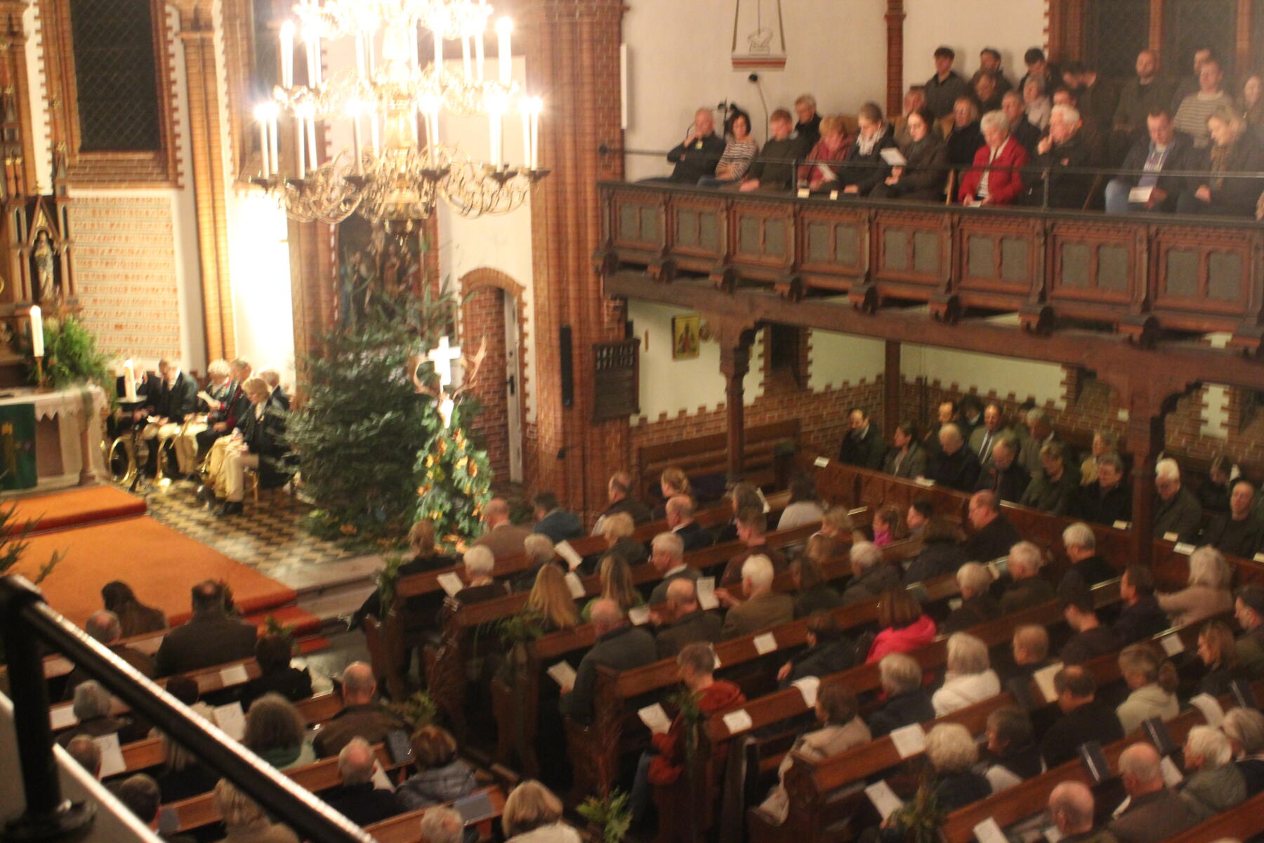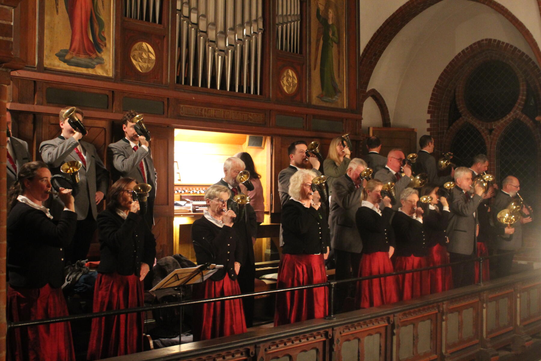festlich geschmückt. Bereits vor Beginn der Messe unterhielten die Bläsergruppen Allerort und Fischerhunde-West die Gäste mit jagdlichen Signalen und Bläserstücken. Unter den festlichen Klängen der „Begrüßung“, geblasen vom Bläsercorps der Jägerschaft Verden, zogen Pastorin Merle Oswich und die Bläsergruppe „BienAller“ in die Kirche ein. Pastorin Oswich begrüßte die Gemeinde und zeigte sich erfreut über die große Resonanz: „Fast so voll wie an Weihnachten“, sagte sie laut einer Mitteilung an die Presse angesichts der mehr als 300 Besucher.