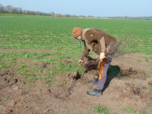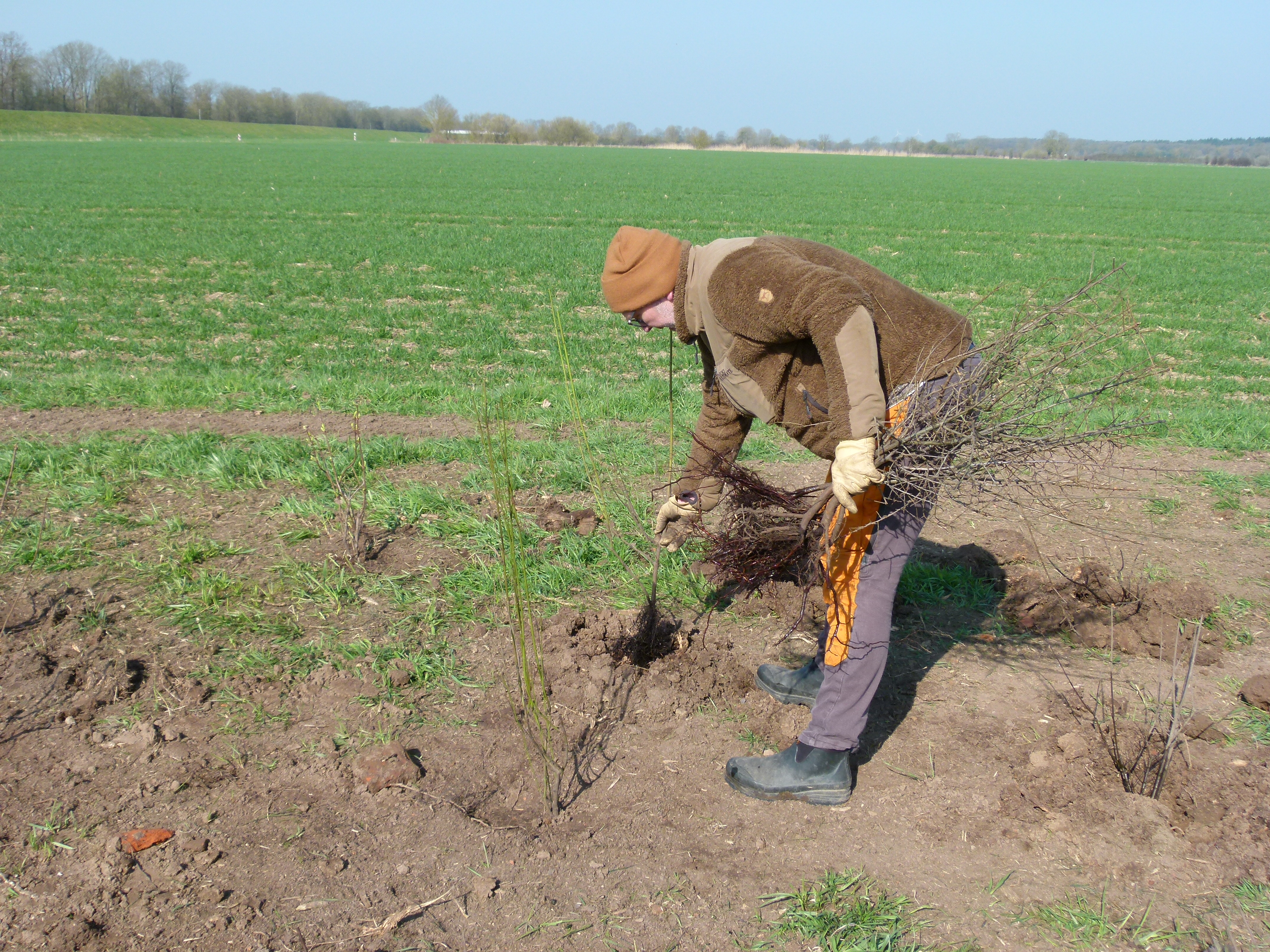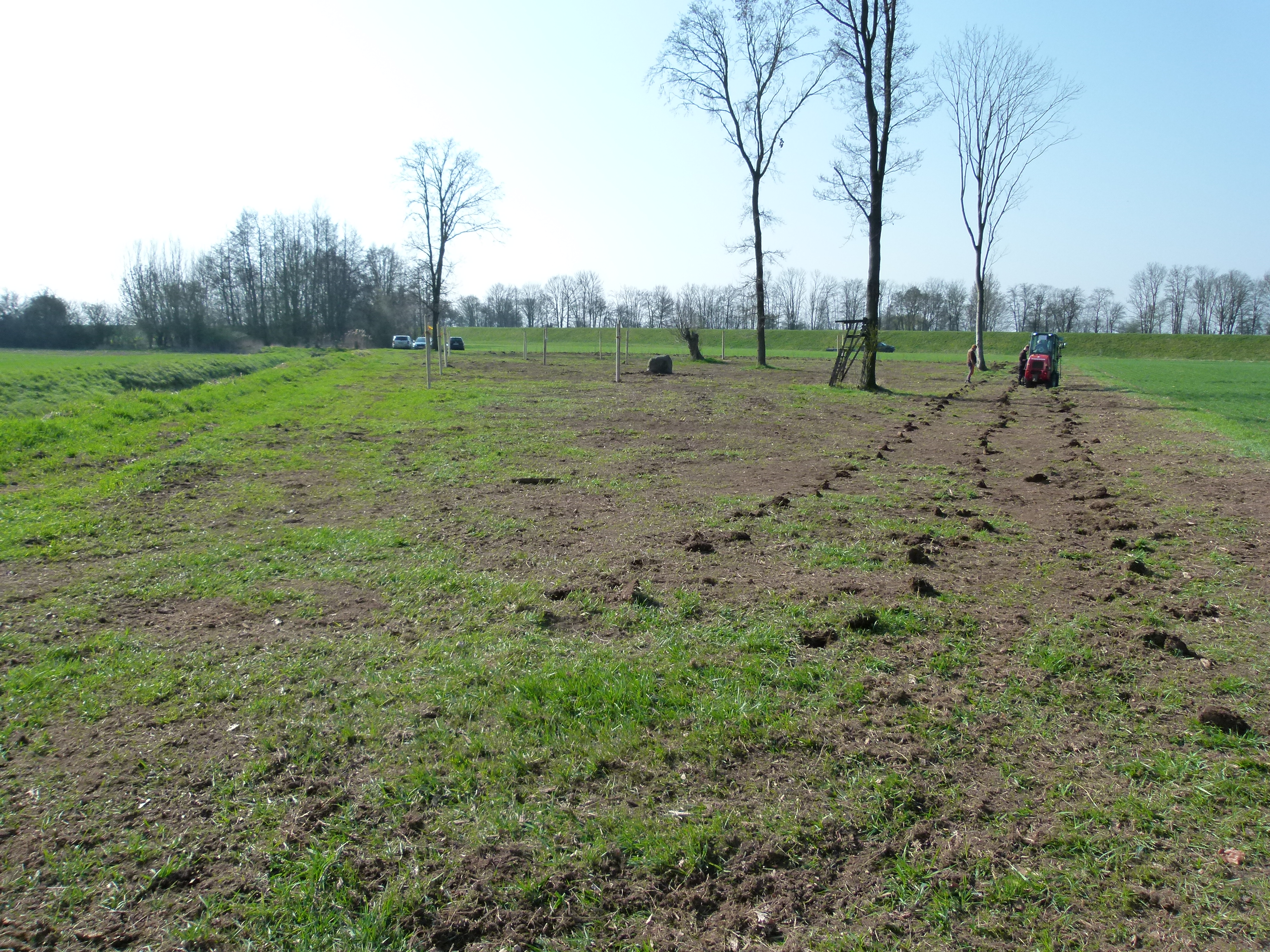Nach der Lieferung der Pflanzen begann die eigentliche Pflanzaktion. Zwischengelagert wurden die Pflanzen in einem angrenzenden Graben, damit die Wurzeln nicht austrocknen.