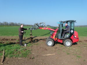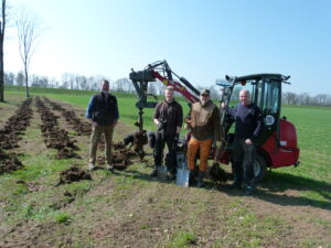 Unterstützt wurden die Jagdpächter von Begehungsscheininhaber Michael Huss. Die von ihm geführte Firma Huss konnte einen Erdbohrer bereitstellen, um die Pflanzlöcher vorzubereiten. Angesichts des schweren, lehm- und tonhaltigen Bodens erwies sich diese Hilfe als besonders wertvoll.
