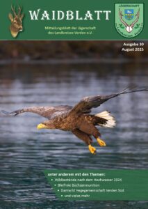 Das „Waidblatt“ ist das offizielle Mitteilungsblatt der Jägerschaft des Landkreises Verden für seine Mitglieder. Es erschien bis 2012 zweimal im Jahr, Anfang Februar und Anfang September. Seit 2013 erscheint es immer Ende Juli in völlig neuer und viel höherwertiger Aufmachung. Das Waidblatt Nr. 29/2024 wird im 21. Jahr seines Bestehens mit einer Auflage von rund 1200 Stück erstellt. Es enthält wieder aktuelle Berichte und Informationen, die für alle Mitglieder eine hohe Relevanz haben. Vom Vorsitzenden der Jägerschaft Verden, dem Kreisjägermeister, aus Hegeringen, von Mitgliedern, Behörden sowie von anderen Verbänden und Organisationen. Damit stellt es eine größtmögliche Ergänzung zum Internetauftritt der Jägerschaft Verden dar. Aufgrund der Synergien mit unserer Webseite erscheint das Waidblatt nur einmal pro Jahr.